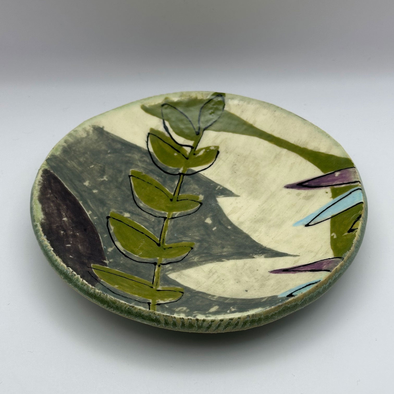 let’s dish! turn up the fun at your table with this mid-century inspired plate, featuring a playful mix of modern shapes and floral accents. this plate is the perfect blend of retro charm and modern flair.